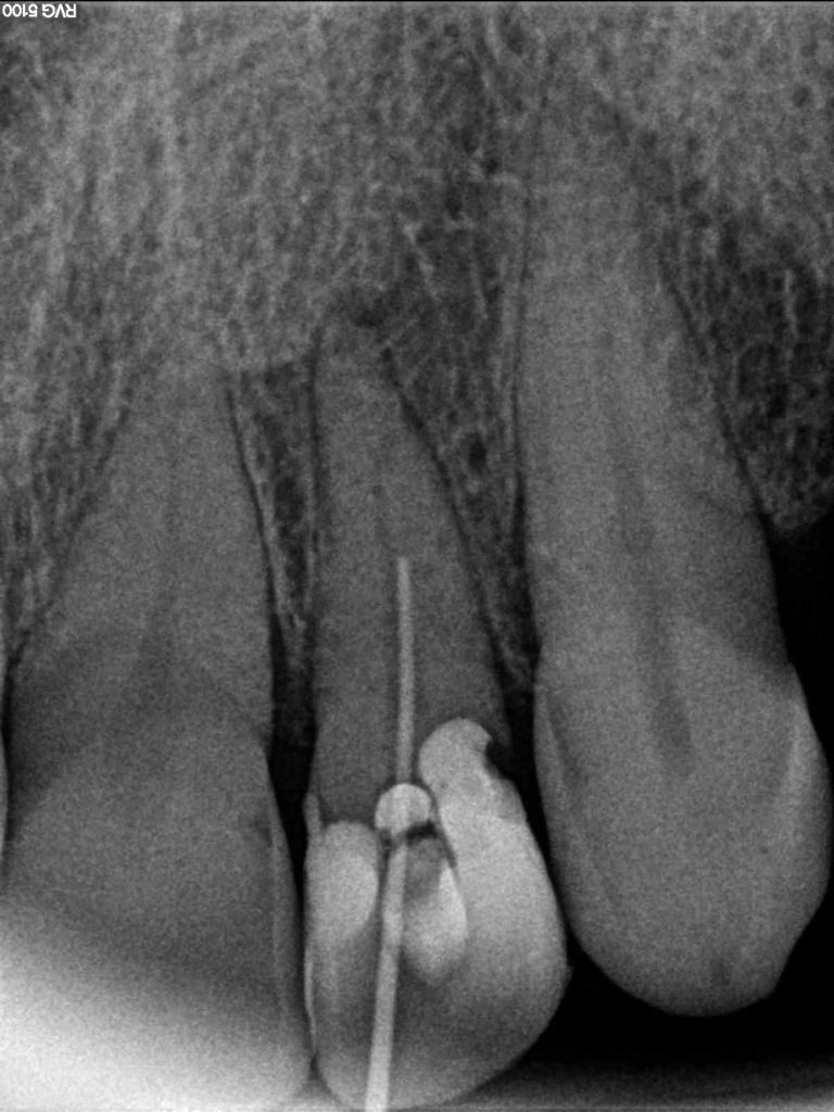 Endodoncia de un 11 con salida lateral en tercio medio radicular